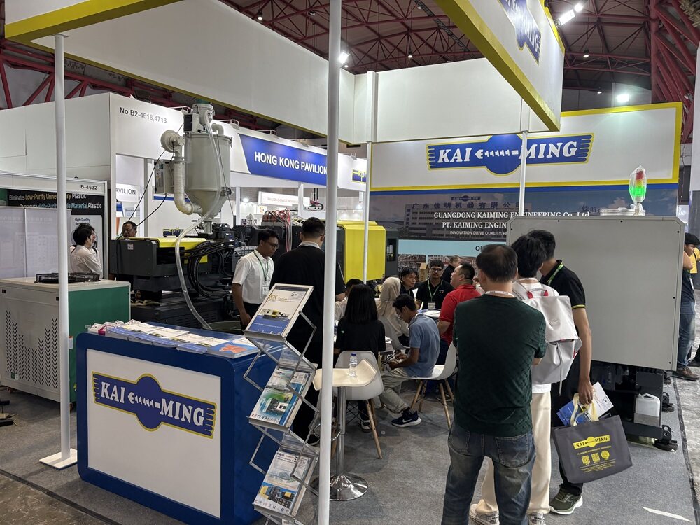 Kaiming, booth number B2-4530, shows 2 servo motor injection molding machines, KM 230 KK & PD168-KX model.